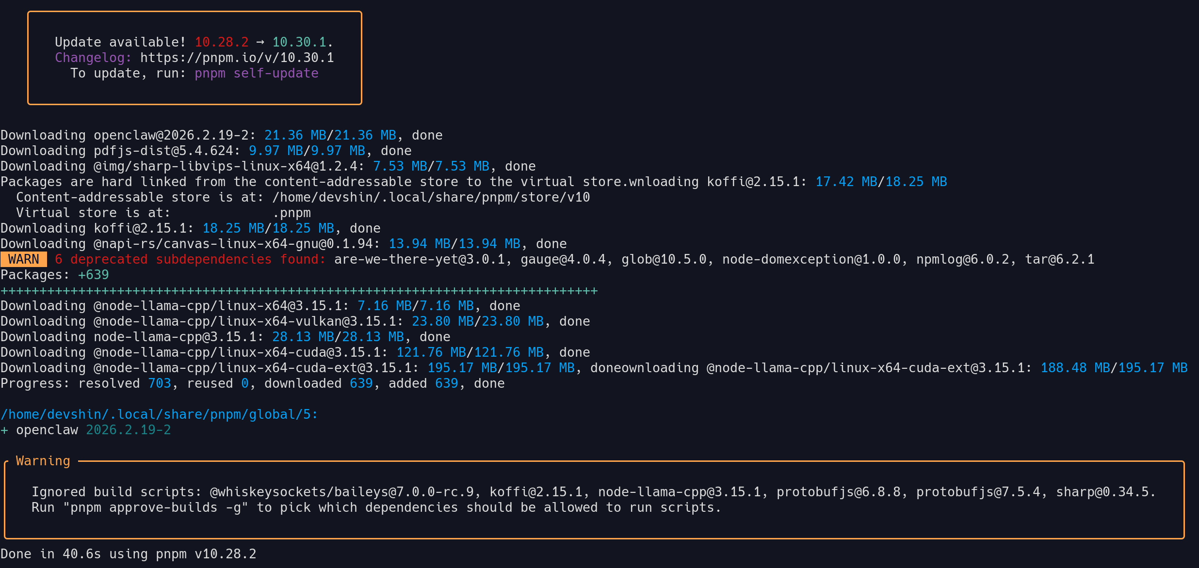 - OpenClaw는 pnpm 글로벌 설치 방식 사용함